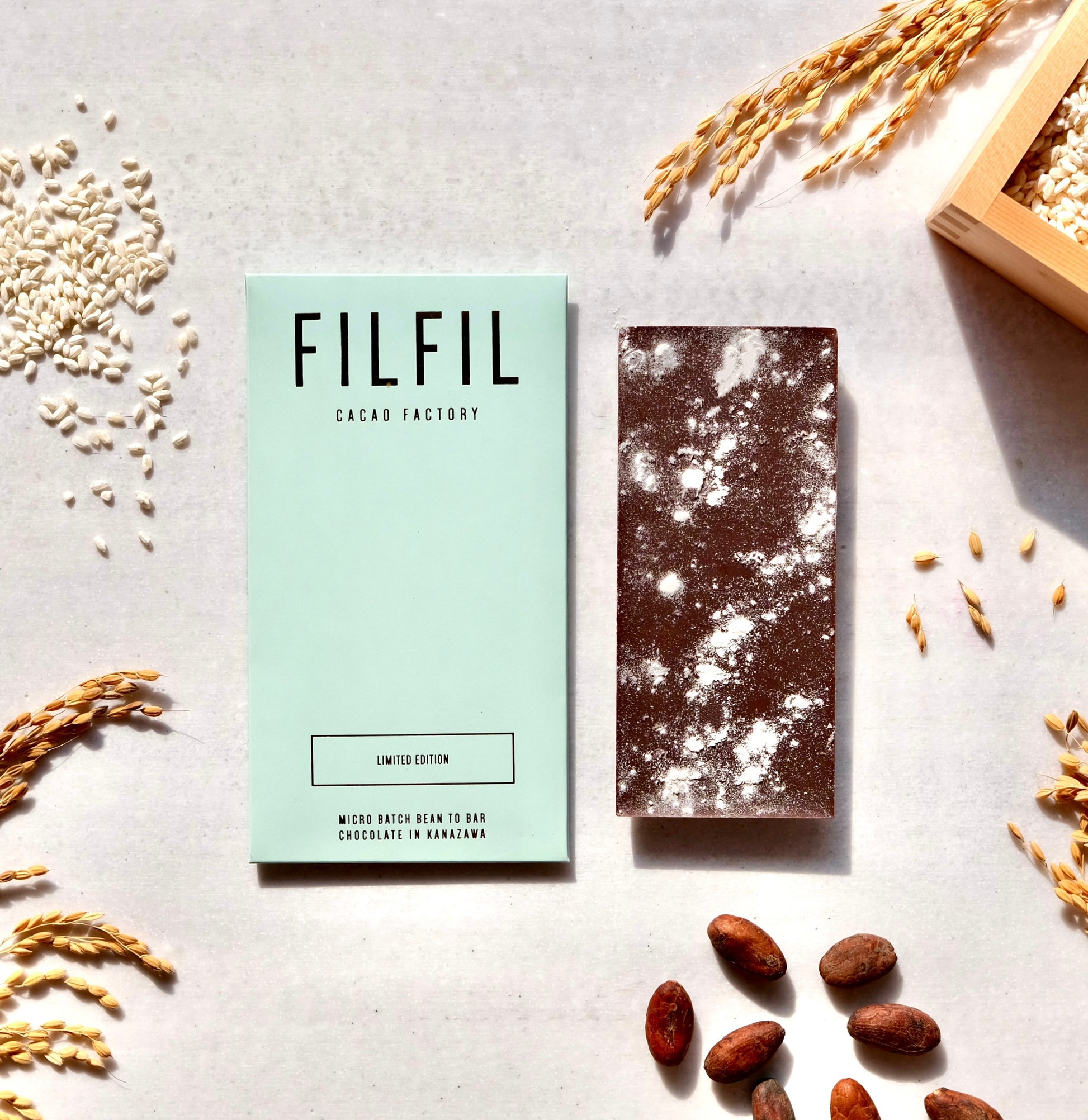 石川・金沢のファクトリーで、カカオ豆からチョコレートバーをつくるまでのすべての工程を―貫して行なっています。素材の味わいが活きたチョコレートをお楽しみください。
